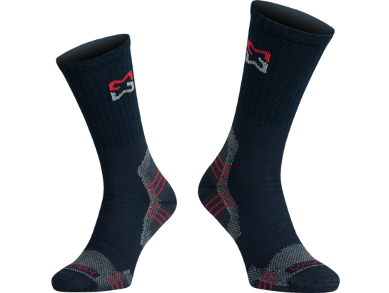 Confeccionado con tecnología de tejido “doble capa” para evitar el deterioro prematuro de la prenda Gran capacidad de evacuación hacia el exterior de la humedad Estructura elástica en el pie y la pierna que evita que el calcetín resbale Especialmente diseñado para usar con botas, refuerzos en puntera y talón