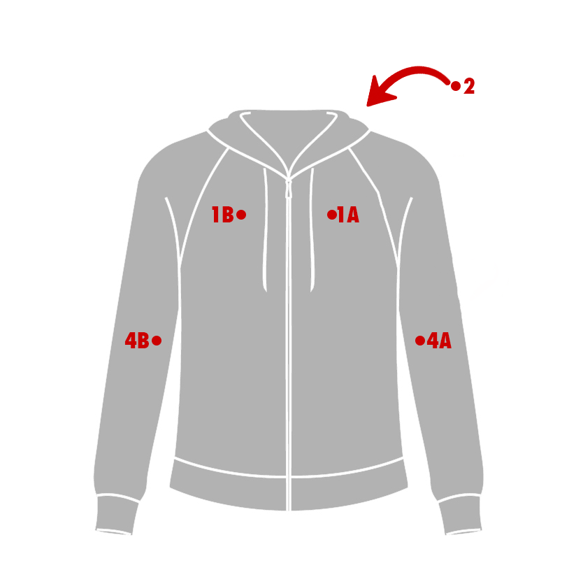 Existen varias zonas disponibles para marcar las prendas. Según el tipo de prenda.